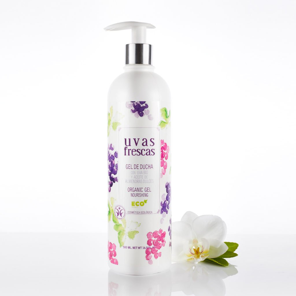El Gel Ecológico Uvas Frescas enriquecido con Aloe Vera y Extracto de Uva cuida de forma natural la piel respetando su pH fisiológico. Su suave aroma a uva y almendras dulces convierte una ducha diaria en una delicia aromática.
